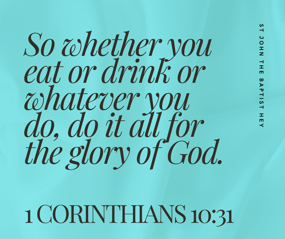 So whether you eat or drink or whatever you do, do it all for the glory of God.” – 1 Corinthians 10:31